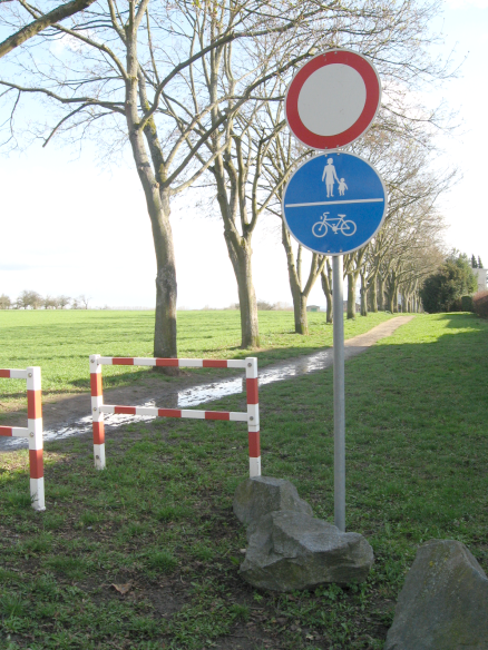 Diese gängigen Sperrungen sind unübersehbar, hinzu kommen stellenweise auch in der Natur »Drängelgitter«, die zumindest für Fahrräder mit Anhängern, z.B. Kinderanhängern, ein Problem darstellen