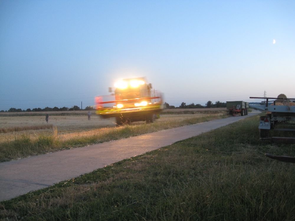 Abb.1c Mähdrescher sind selbst mit angehängtem Mähwerk und auf der Strasse äußerst raumgreifend