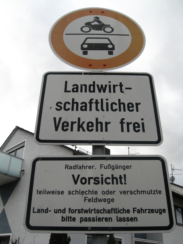 Aber: Kaum zu glauben, aber amtlich, in Hessen ist das anders. Dort ist nicht nur das Radfahren auf Privatwegen nicht von vornherein gestattet, sondern zudem sind viele Wirtschaftswege in Feld und Flur massiv oder mit einer Beschilderung für Radfahrer gesperrt.